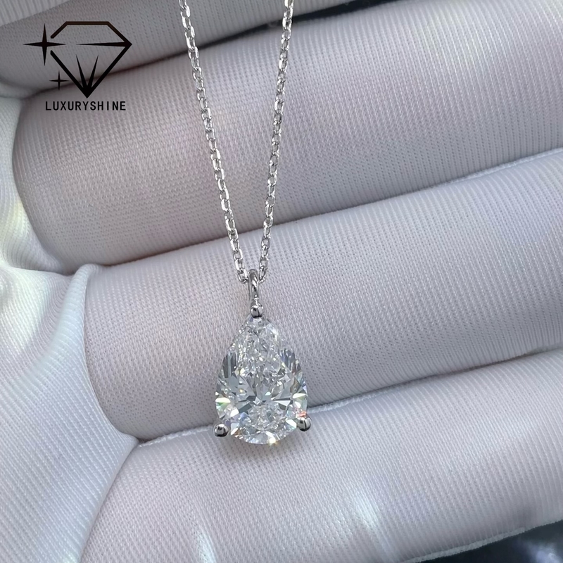 강조하다: | 랩 그로운 페어 다이아몬드 목걸이,18K 금 다이아몬드 목걸이,VVS-VS 투명도 다이아몬드 주얼리 |